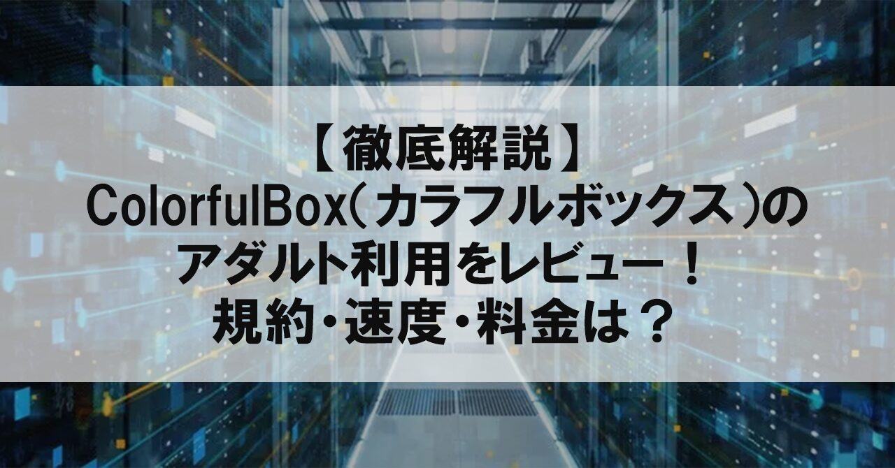 アダルトブログの成功には、高画質データを迅速に転送できる「速度」が不可欠です。カラフルボックスの速度性能は、アダルトコンテンツ運営に耐えうるものなのでしょうか。
