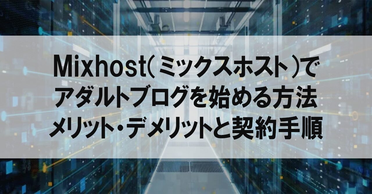 アダルトブログやアダルトアフィリエイトを始める際、最も重要かつ最初に決めるべきなのが、「どのレンタルサーバーを選ぶか」です。国内の主要サーバーの多くがアダルトコンテンツを禁止する中、mixhost(ミックスホスト)は、通常プランに加え「mixhost adult」というアダルト特化型サービスを提供しており、国内アダルトサイト運営者にとって最有力候補となっています。本記事では、mixhostでアダルトブログを立ち上げる際の決定的なメリット・デメリット、そして迷わず契約を完了させるための手順を詳細に解説します。